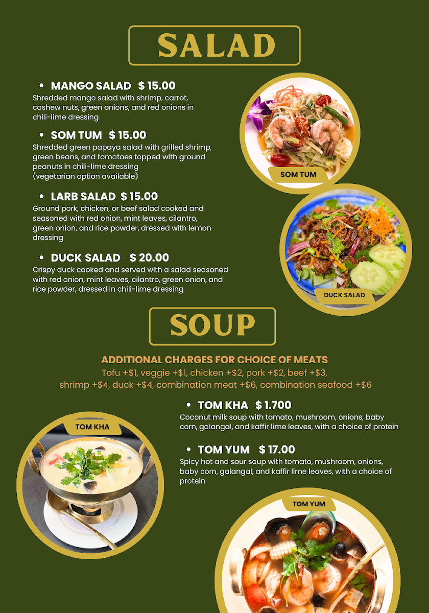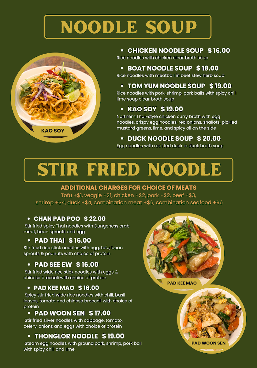 Welcome to Thonglor Thai Bistro, a gem nestled in downtown San Mateo, where authentic Thai cuisine comes alive. The menu features a delightful array of dishes that promise to satisfy every palate. Start your culinary adventure with the invigorating Papaya Salad or the savory BBQ Pork Neck Salad. For heartier options, the famous Khao Soi impresses with its rich flavors, while the Pad See Ew offers a comforting, noodle-filled experience.